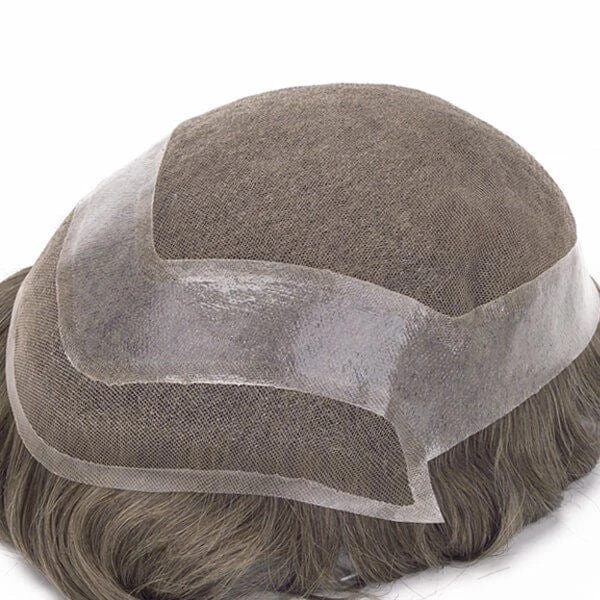 The base design of this toupee is imported French lace in the middle, thin PU around the perimeter and 1/2 French lace along the front hairline.
