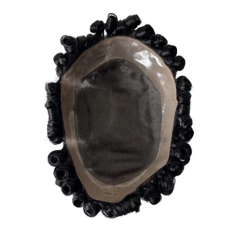 15mm Curl 7x9 Toupee Full Lace Units for Black Men